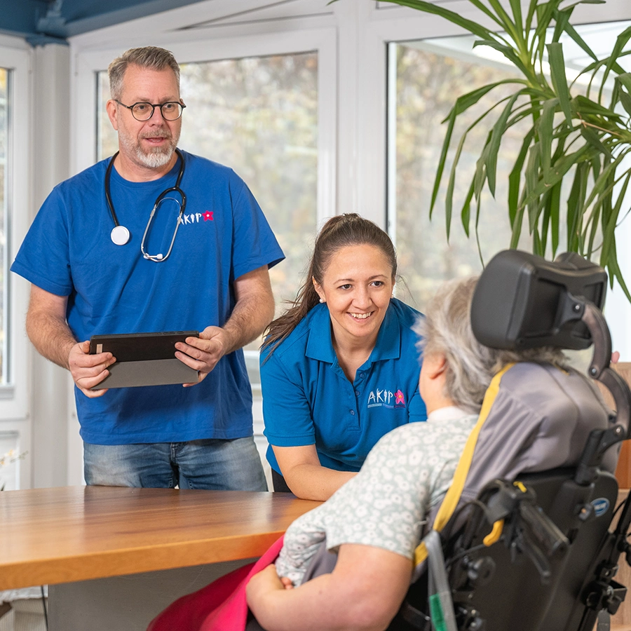 Mit der ganzheitlichen Versorgung von intensiv- und beatmungspflichtigen Klient*innen ermöglichen wir ein Leben dort, wo Sie sich wohlfühlen – zu Hause bzw. in Wohngemeinschaften für intensivpflegebedürftige Menschen. Trotz schwerster Erkrankungen, wie z.B. Atemwegs-, neuro-/muskulärer Erkrankungen, Anfalls-leiden, Wachkoma oder Heimbeatmung – mithilfe unseres AKIP-Intensivpflege-Services können unsere Klient*innen selbstbestimmt wohnen, obwohl sie einen Teil der lebenswichtigen Körperfunktionen nicht mehr allein beherrschen. Wir organisieren eine lückenlose Klient*innenversorgung sowie das notwendige Überleitungs- und Versorgungsmanagement. Gemeinsam mit Angehörigen, Ärzten, den Hilfsmittelversorgern und unseren erfahrenen Pflegedienstleitungen wird der Bedarf an technischen Geräten, Hilfsmitteln und Hilfeleistungen exakt ermittelt. Sie selbst und ggf. Ihre Mitmieter*innen entscheiden, wie Sie Ihre Tage gestalten wollen und wir unterstützen Sie dabei in allen Bereichen – bei Bedarf rund um die Uhr. Dies garantiert Ihnen höchste Lebensqualität bei einer umfassenden Versorgung.